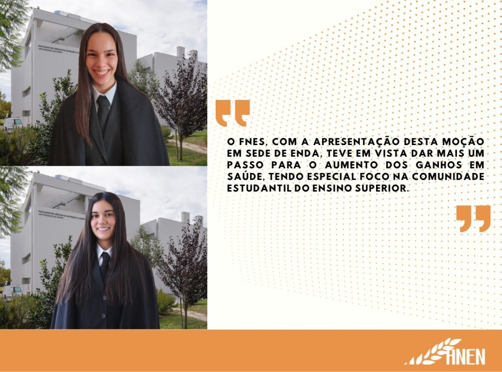 Nos dias 5 e 6 de março decorreu, em Guimarães, o Encontro Nacional de Direções Associativas (ENDA), no qual foi aprovada a Moção do Fórum Nacional de Estudantes de Saúde (FNES) intitulada “Orçamento do Estado: A necessidade de investir na saúde em Portugal”, um documento estratégico para o qual a Associação Nacional de Estudantes de Nutrição contribuiu ativamente.
