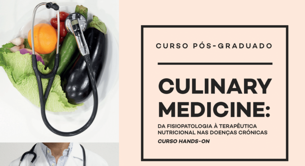 “O curso Culinary Medicine pretende oferecer uma abordagem pedagógica baseada na evidência, que combina conhecimentos de fisiopatologia, bioquímica e metabolismo com a nutrição e alimentação humanas, concretizando-se em aprendizagens hands-on de como realizar recomendações nutricionais e alimentares concretas e adequadas a diferentes doenças crónicas. Este curso constitui uma ferramenta chave face aos desafios impostos pela sociedade e que visa acompanhar a evolução da medicina, tendo em vista o conceito da medicina dos 4P’s (preditiva, preventiva, personalizada e participativa”, indica o flyer do curso.