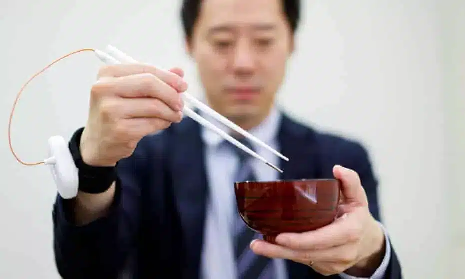 Um grupo de investigadores japoneses criaram pauzinhos elétricos, que criam uma sensação artificial do sabor do sal, procurando reduzir a ingestão do mesmo e consequentemente melhorar a saúde.