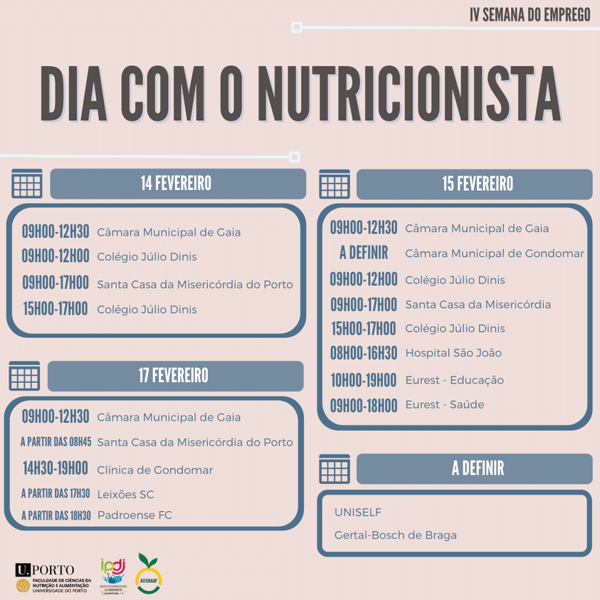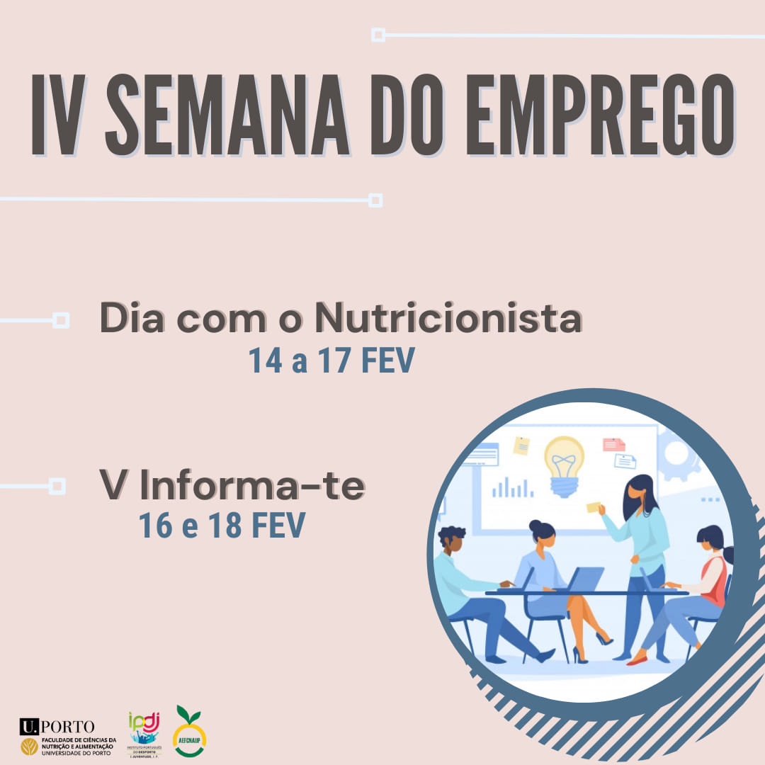 A Associação de Estudantes da Faculdade de Ciências da Nutrição e Alimentação da Universidade do Porto (AE FCNA UP), entre 14 e 18 de fevereiro, promove a IV Semana do Emprego.