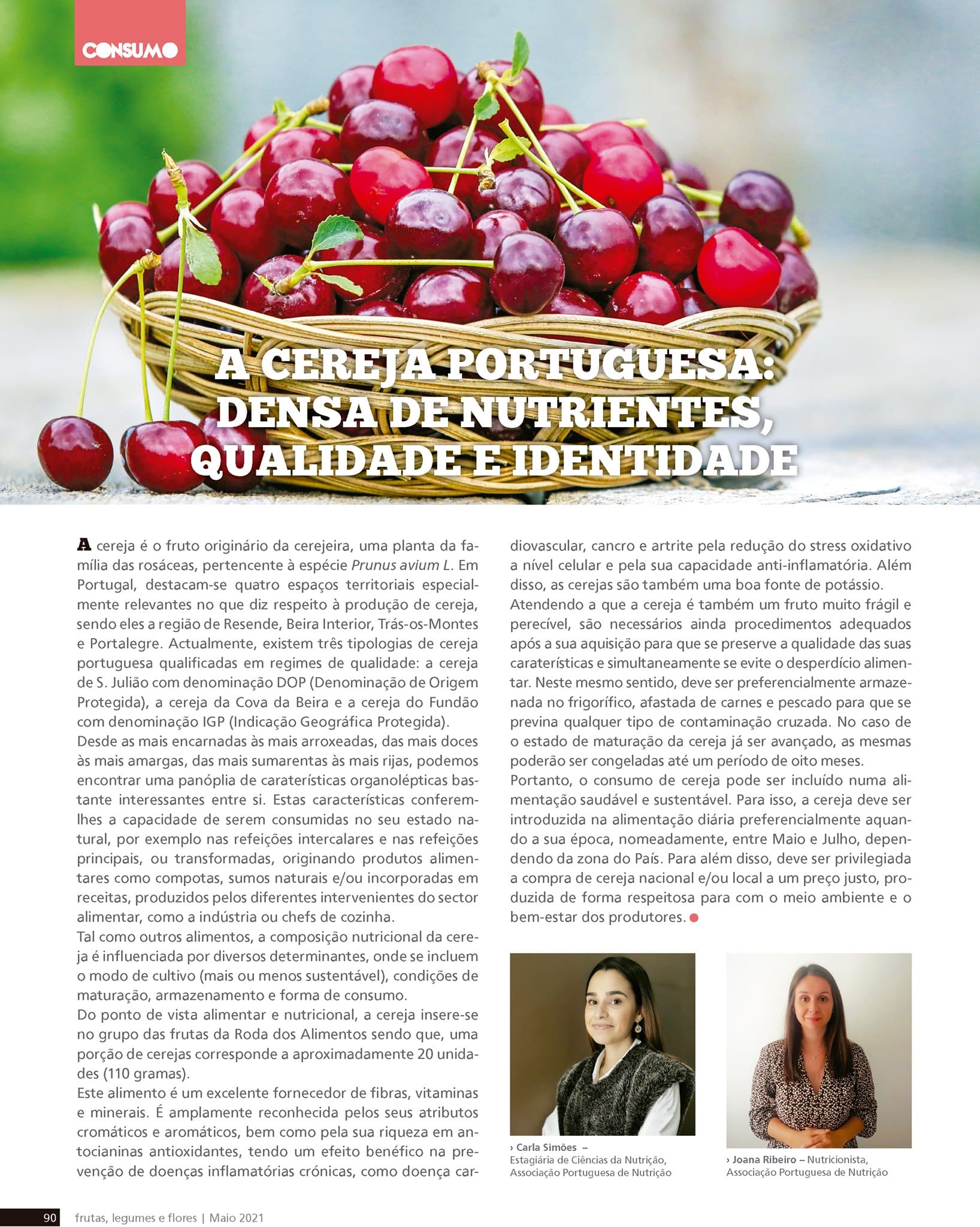 A Associação Portuguesa de Nutrição (APN) divulgou um artigo sobre “A Cereja Portuguesa: densa de nutrientes, qualidade e identidade”.