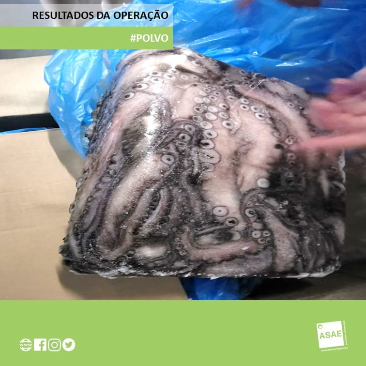 Já em Coimbra foram apreendidos 4.157 quilos de géneros alimentícios de origem animal, que se encontravam numa câmara de conservação de congelados, nomeadamente polvo inteiro eviscerado, em virtude de não possuir a marca de identificação do último estabelecimento que o manipulou e da inexistência do número de controlo veterinário (NCV), que constitui pré-requisito para que se mostrem cumpridas, perante os consumidores e as autoridades de controlo, as normas de segurança alimentar”. A apreensão ascendeu aos 51 mil euros.