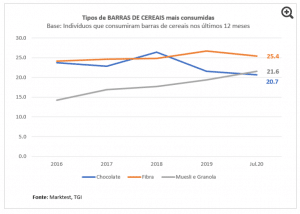 De acordo com um estudo TGI da Marktest, um milhão e 919 mil indivíduos consumiram barras de cereais nos últimos 12 meses. Isto representa 22,4% dos residentes no Continente com 15 e/ou mais anos.