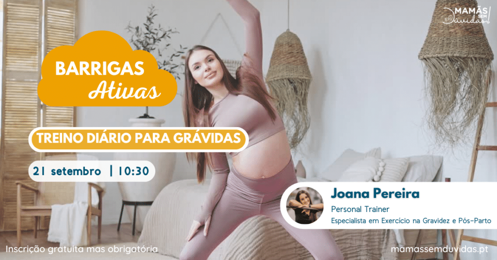 Subordinada ao tema “Treino Diário para Grávidas”, a sessão será conduzida por Joana Pereira, Personal Trainer e especialista em Exercício na Gravidez e Pós-Parto, que irá partilhar estratégias eficazes para manter uma rotina de exercício físico segura e adaptada às necessidades das futuras mamãs.