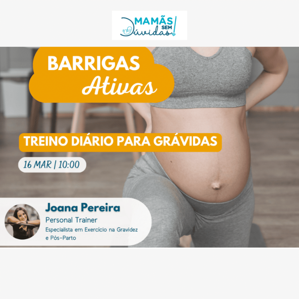 A Mamãs sem Dúvidas organiza no dia 16 de março, às 10H00, em formato online, mais uma sessão de treino diário para grávidas. A gravidez é uma fase especial e desafiante para a mulher, com alterações constantes do corpo. Manter ou adotar um estilo de vida saudável nesta fase é fundamental. A prática de exercício físico, de forma ajustada e com o acompanhamento adequado, pode ajudar a prevenir dores e a promover o bem-estar geral da mãe e do bebé.