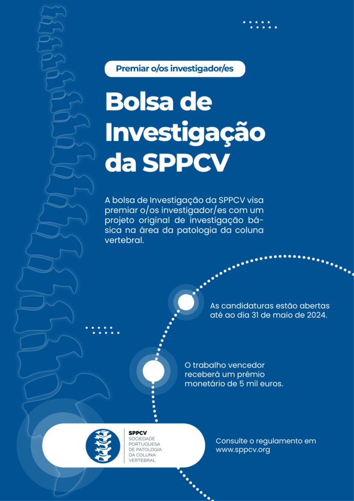 A Sociedade Portuguesa de Patologia da Coluna Vertebral (SPPCV) anuncia a abertura das candidaturas para a Bolsa de Investigação na área da patologia da coluna vertebral, que decorrem entre os dias 1 de março e 31 de maio de 2024. Ao projeto vencedor, será atribuído um prémio monetário de cinco mil euros.