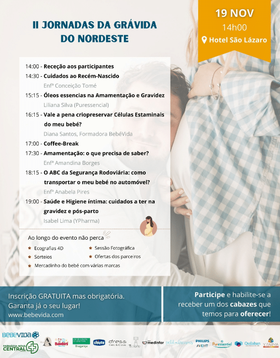 A participação nas II Jornadas da Grávida do Nordeste é gratuita, sendo apenas necessária inscrição prévia no site da BebéVida. Ao participar, as futuras mamãs podem habilitar-se a receber um cabaz de produtos diversos.