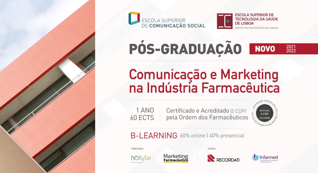 Estão a decorrer as candidaturas para o novo curso de pós-graduação em Comunicação e Marketing na Indústria Farmacêutica da Escola Superior de Comunicação Social (ESCS) e Escola Superior de Tecnologia da Saúde de Lisboa (ESTeSL), unidades orgânicas do Instituto Politécnico de Lisboa. Este curso tem a parceria da revista MARKETING FARMACÊUTICO e conta com o apoio da multinacional farmacêutica Jaba Recordati e do Infarmed.