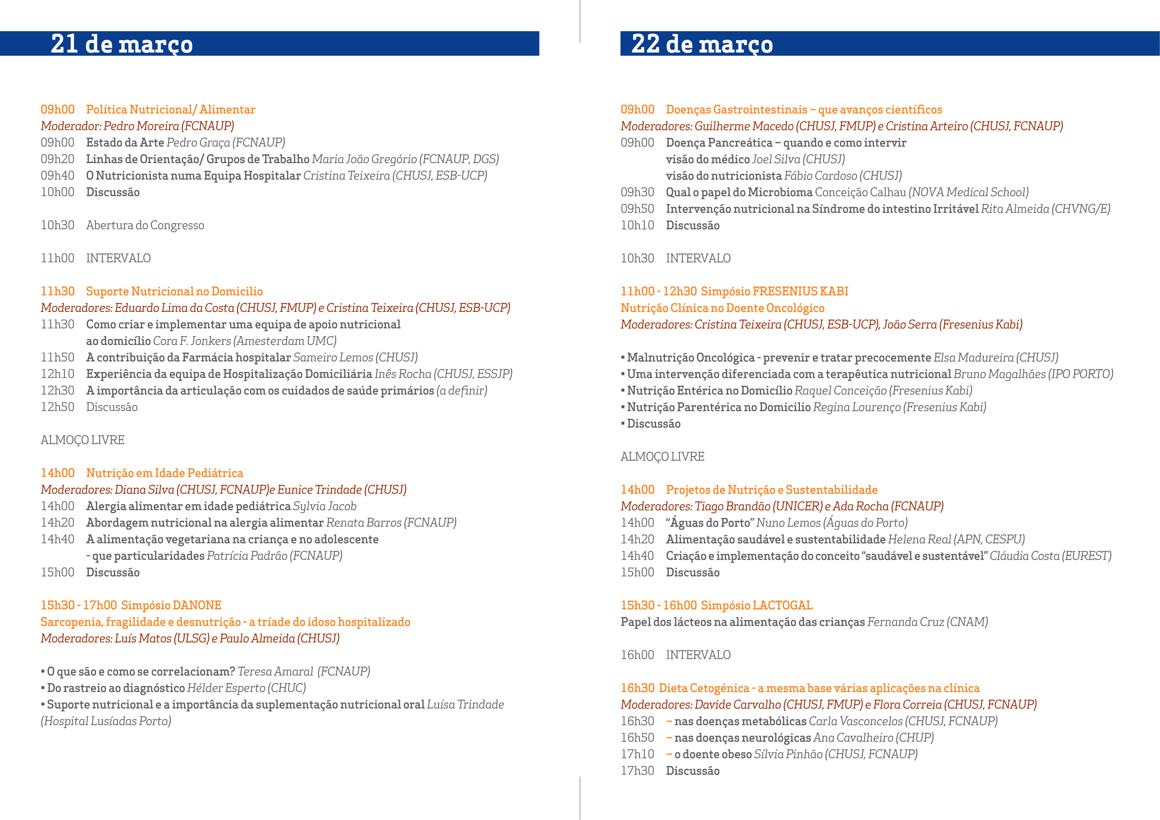 Nos próximos dias 21 e 22 de março, o Serviço de Nutrição do Centro Hospitalar e Universitário do São João (CHUSJ), realiza o seu I Congresso, no Auditório do CIM da FMUP, no Porto.