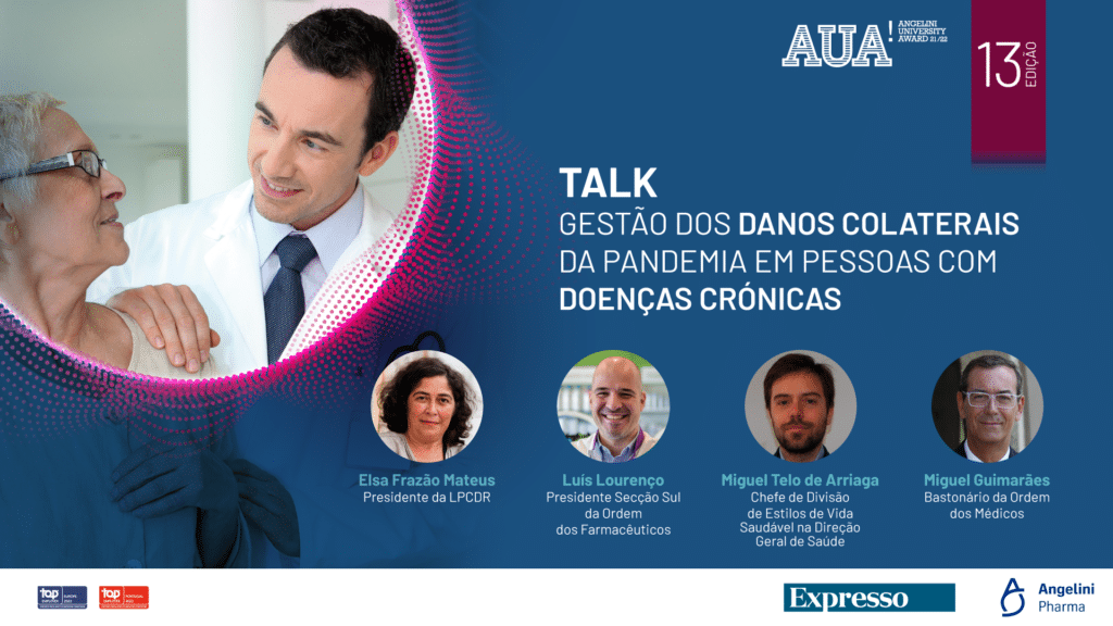 Esta sessão acontece no âmbito na 13ª edição do Angelini University Award (AUA) tem como tema a “Gestão dos Danos Colaterais da Pandemia em Pessoas com Doenças Crónicas”. Este ano serão distinguidos projetos assentes em soluções para reduzir o impacto provocado pela covid-19 na vida dos doentes crónicos.