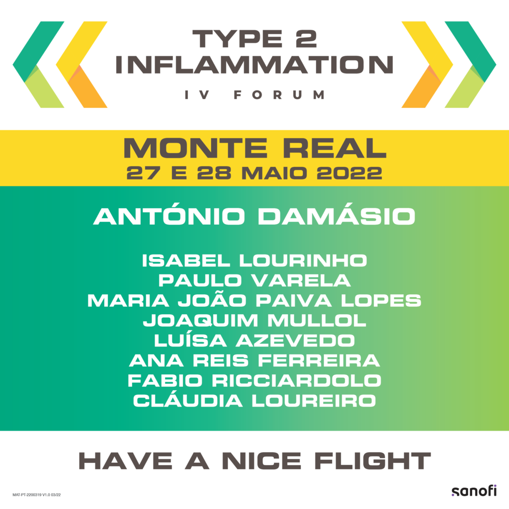 Com o objetivo de debater as diferentes vertentes associadas à Inflamação Tipo 2, a Sanofi realiza a 4ª edição do Fórum Type 2 Inflammation, nos próximos dias 27 e 28 de maio, na base aérea de Monte Real. Esta edição conta com a participação especial de António Damásio no primeiro dia do evento, e envolve também alguns dos mais relevantes speakers nacionais e internacionais na área da dermatologia, imunoalergologia, otorrinolaringologia e pneumologia, abordando os mais recentes temas e desenvolvimentos sobre as doenças associadas e os seus tratamentos.