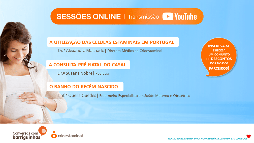 A Crioestaminal vai também marcar presença, nas sessões online, com a diretora médica, Alexandra Machado, e a responsável do departamento de investigação e desenvolvimento, Carla Cardoso, para falarem da importância de guardar as células estaminais do cordão umbilical do bebé, focando as suas aplicações terapêuticas atuais e ainda às futuras utilizações.