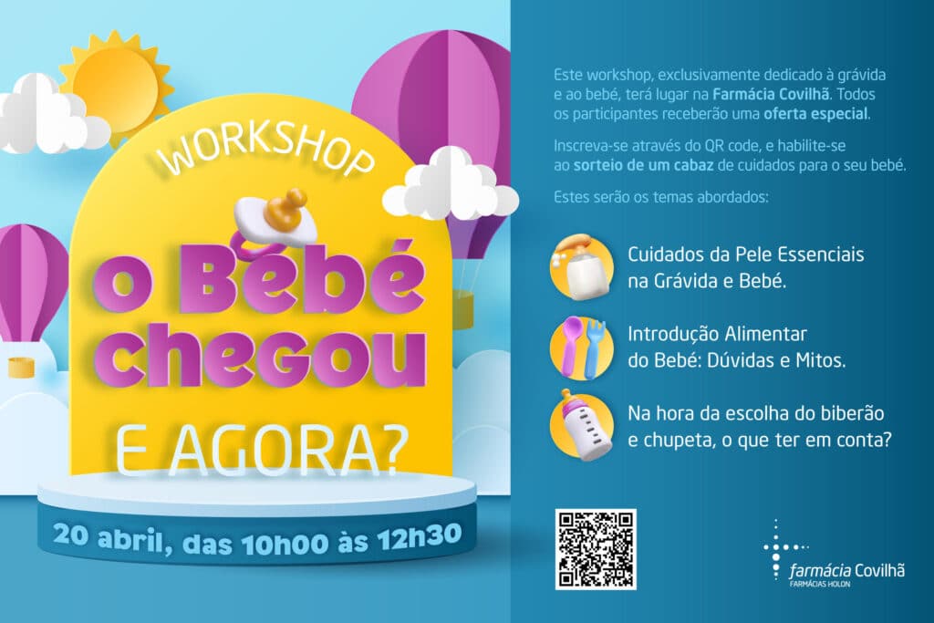 Um dos destaques desta quinzena será o workshop “O Bebé Chegou e Agora”, que terá lugar no dia 20 de abril na Farmácia Covilhã. Este workshop, gratuito, mas com inscrição obrigatória através deste link: https://forms.gle/sa46rBCgzjzkNm7ZA, abordará temas importantes e dúvidas frequentes dos pais. Temos uma oferta para todos os participantes e terão ainda a oportunidade extra de habilitar-se a receber um cabaz de cuidados exclusivos para o bebé.