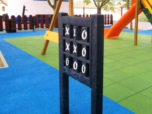 Criados a partir de plásticos mistos colocados nos ecopontos amarelos, a marca estima doar, no total do ano, cerca de 40 equipamentos tais como, jogos do galo e casinhas para brincar.