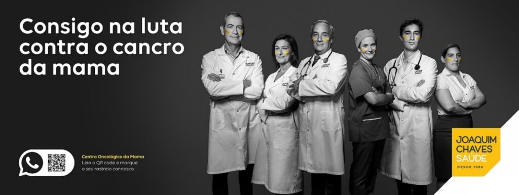 No mês de sensibilização para o cancro da mama, a Joaquim Chaves Saúde acaba de criar uma linha direta, no Whatsapp, para a marcação de rastreios ao cancro da mama. Esta linha facilitadora surge no âmbito do lançamento da campanha “Consigo na luta contra o cancro da mama”, na qual vários profissionais do Grupo surgem com a cara pintada numa alusão ao seu apoio na luta que estes doentes enfrentam todos os dias.