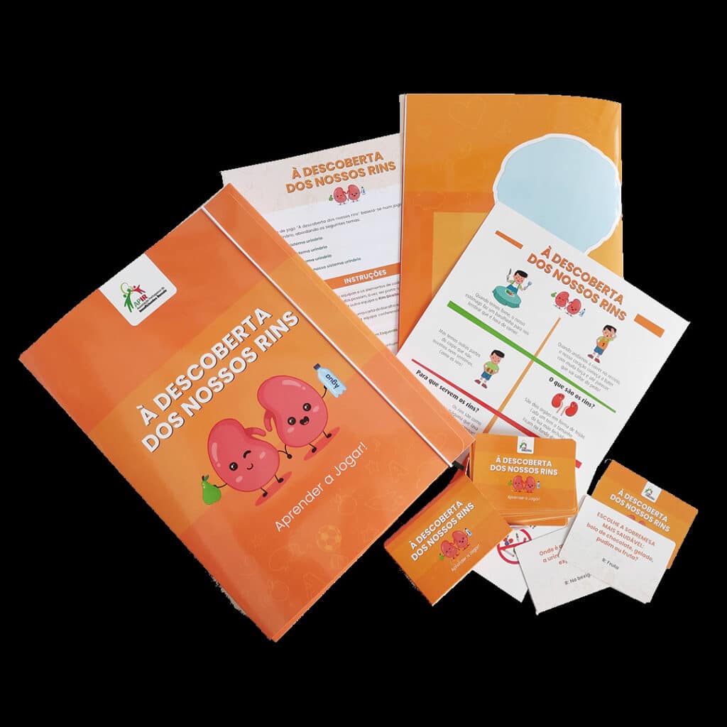 O jogo “À descoberta dos nossos rins” inclui um dossiê completo com instruções, cartas de jogo, um póster educativo e fichas de atividades. Os materiais encontram-se disponíveis online, através do seguinte link: https://www.apir.org.pt/publicacoes/jogo-a-descoberta-dos-nossos-rins/