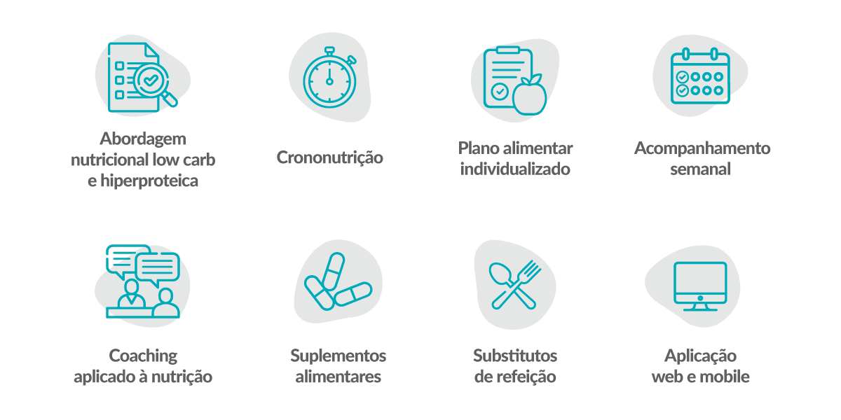 O Método3Fases disponibiliza ainda substitutos de refeição hipocalóricos, com alto teor em proteína, fibra, baixo teor em hidratos de carbono e açúcares simples, com o intuito de facilitar a perda de peso e massa gorda devido ao seu reduzido valor energético [8, 19]. Para além desta vantagem, os substitutos de refeição permitem diversificar o plano alimentar e, com isso, aumentar a adesão ao mesmo.