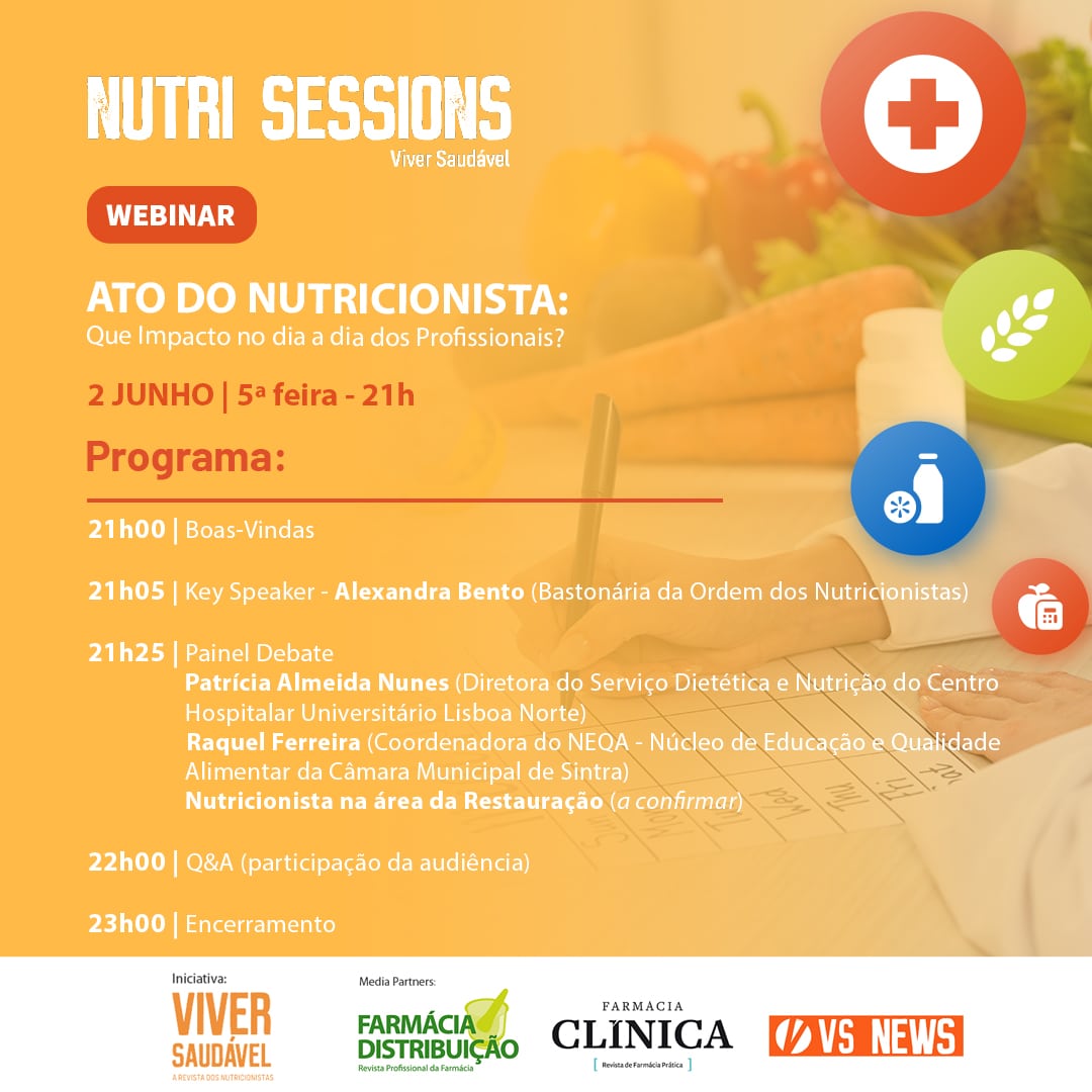 A revista VIVER SAUDÁVEL organiza a terceira edição da NUTRI SESSIONS, com o tema “Ato do Nutricionista: Que impacto no dia a dia dos profissionais?”, no próximo dia 2 de junho, entre as 21:00 e as 23:00.