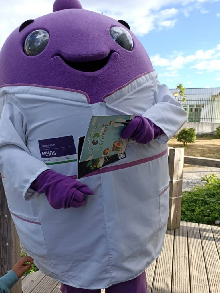 Mesmo depois de uma viagem atribulada de Lisboa o Mimos estava muito entusiasmado por ir brincar com as crianças e ensinar pequenos segredos que nos ajudam a ser saudáveis.