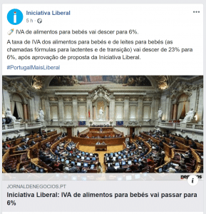 De acordo com a Iniciativa Liberal esta alteração permite reduzir o IVA dos alimentos para bebés de 23% para 6%.