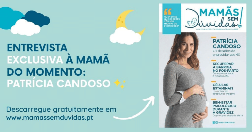 A Mamãs Sem Dúvidas acaba de lançar um novo Guia de Gravidez e da Primeira Infância do Bebé, destinado em especial a futuros pais, que aborda vários tópicos ligados à maternidade, gravidez e primeiros meses de vida do bebé. A atriz Patrícia Candoso fez a capa desta edição, partilhando os principais desafios de engravidar aos 40 anos, bem como a decisão de criopreservar as células estaminais da segunda filha, Margarida, quase a nascer.