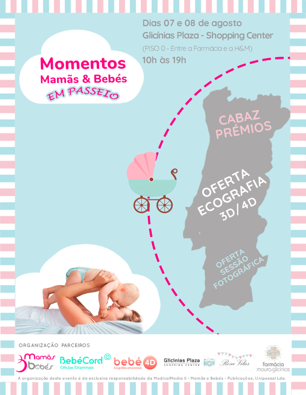 Não há duas sem três: Após o sucesso dos dois eventos “Momentos Mamãs e Bebés em Passeio”, Portimão será palco do terceiro evento presencial e gratuito da Mamãs e Bebés. Nos dias 28 e 29 de agosto, entre as 10h00 e as 19h00, frente à Intimissimi no Piso 1 do Aqua-Portimão, estarão disponíveis várias ofertas e experiências especiais para todas as grávidas que queiram participar.