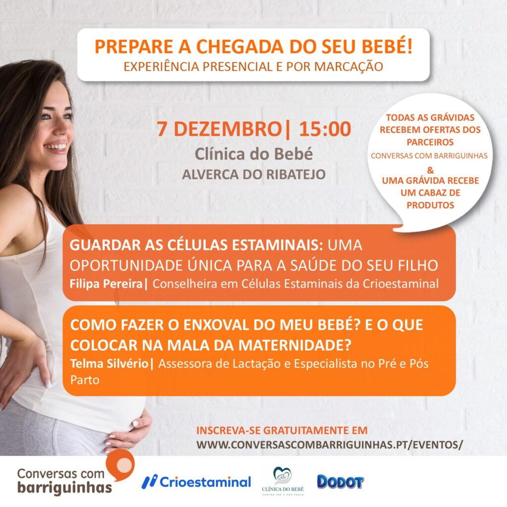 As Conversas com Barriguinhas organizam mais uma sessão dedicada à chegada do bebé, na Clínica do Bebé, em Alverca do Ribatejo, no próximo dia 7 de dezembro, às 15h.