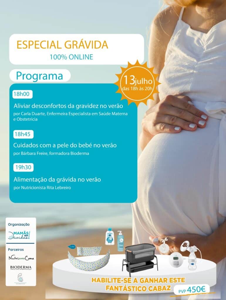 A participação é gratuita, contudo é necessário fazer a inscrição. Ao inscreverem-se as participantes ficam desde logo habilitadas a ganhar um cabaz de produtos no valor de 450€, que inclui: um berço Bébé Confort IORA; uma Pegada Babyart; uma almofada e uma bomba tira-leite elétrica Nuvita; e ainda uma água micelar (1L) e um leite hidratante (500 ml), ambos da Bioderma. O vencedor do cabaz será divulgado no dia 14 de julho, no Instagram da Mamãs Sem Dúvidas.