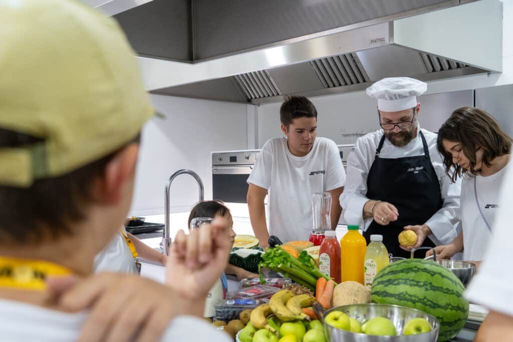 A metodologia da Summer Medical School: lifestyle é baseada numa abordagem prática e interativa. As crianças e jovens participam em workshops práticos – totalmente hands-on num Kitchen Lab, onde aprendem a preparar refeições healthy and fast, compreendendo a importância dos nutrientes e como estes podem afetar o nosso corpo. Este conhecimento que transferimos da academia para a vida dos participantes transforma a maneira como vêm a alimentação, sendo catalisador da mudança.