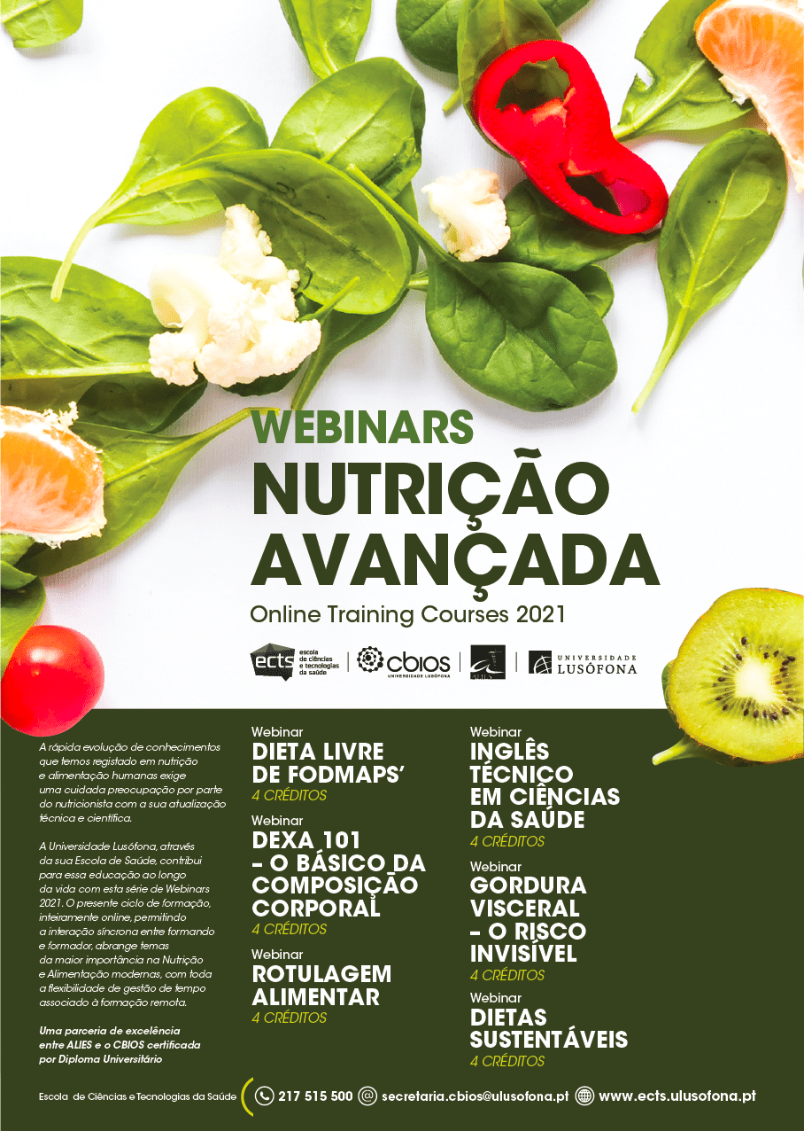 A Escola de Ciências e Tecnologias da Saúde da Universidade Lusófona de Humanidades e Tecnologias, está a organizar uma série de Webinars de formação avançada em diferentes áreas das Ciências da Nutrição.